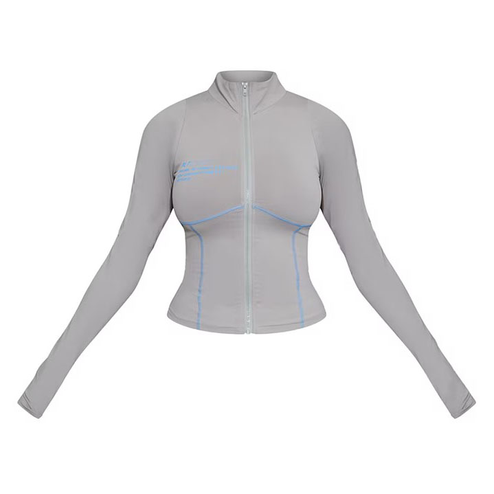 Ash Grey Zip Up Stitch Detail Gym Jacket