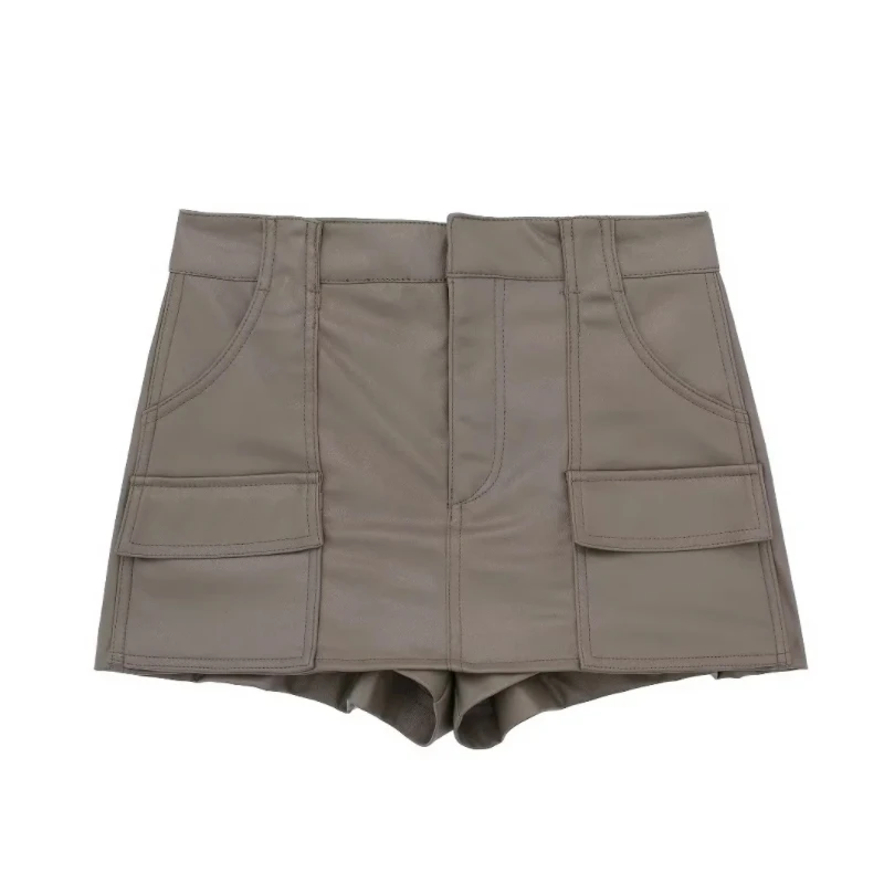 Autumn New Women Faux Leather Casual Shorts Skirts Female High Waist Patch Pocket Loose Street Clothing LUJIA ALAN P5251