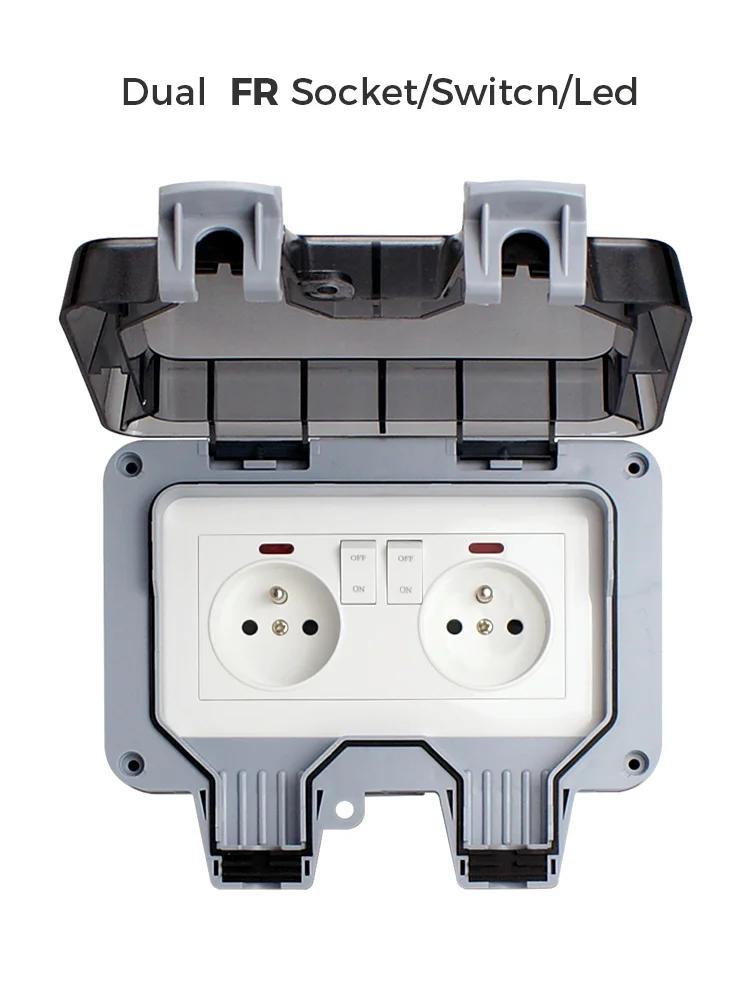 Avoir IP66 Waterproof Dustproof Power Socket 146 Type Dual French Standard Plugs Outdoor Electrical Outlet With Usb Charger Port