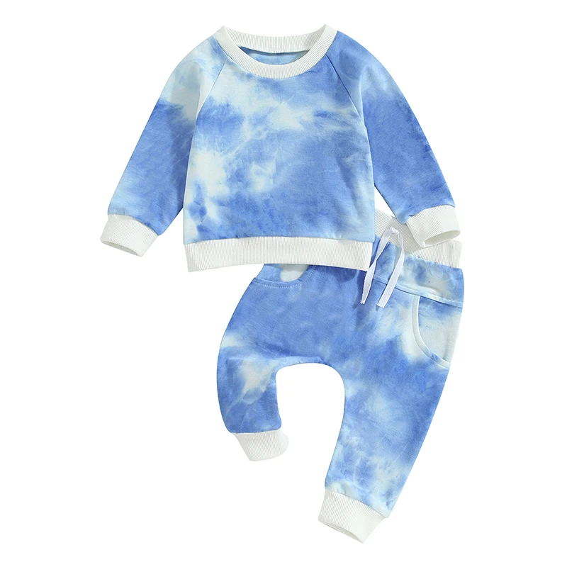 Baby 2Pcs Fall Outfits Long Sleeve Tie-Dye Print Sweatshirt and Pants Set Toddler Clothes
