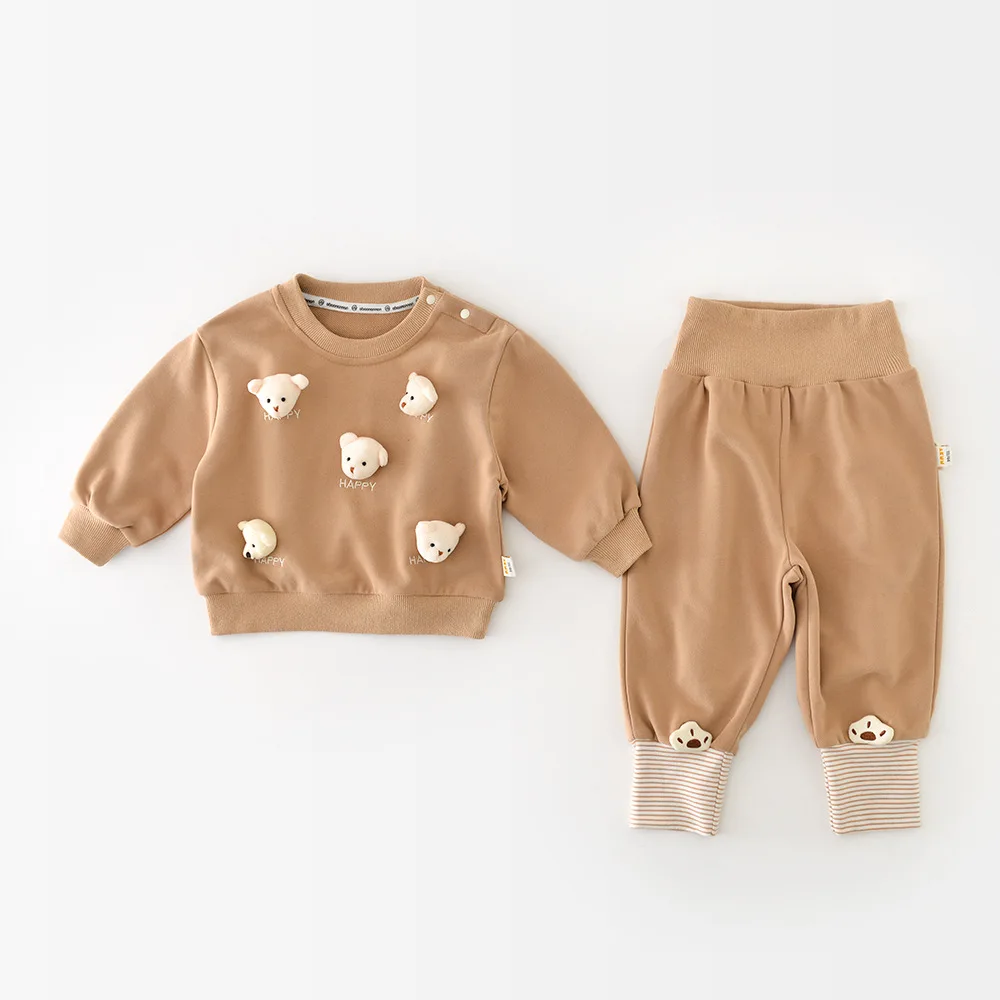 Baby Clothing Set 2025 Spring New Five Bear Head Boy's Suit Newborn Cartoon Two-piece Set Sweater+pant