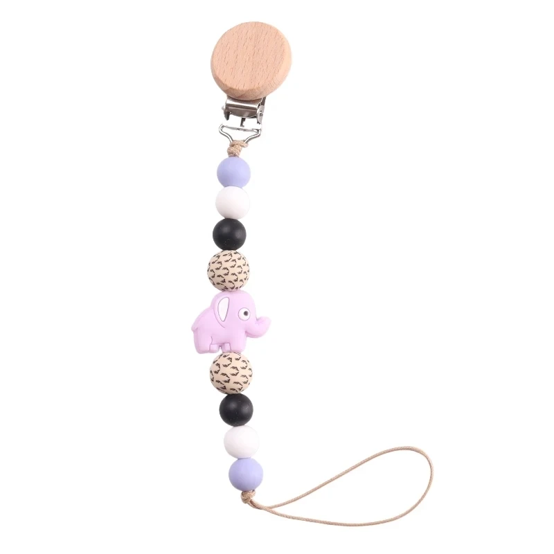 Baby Handmade Silicone Wooden Dummy Pacifier Clip Safe Teething Chain Teether Pacifier Holder Chain
