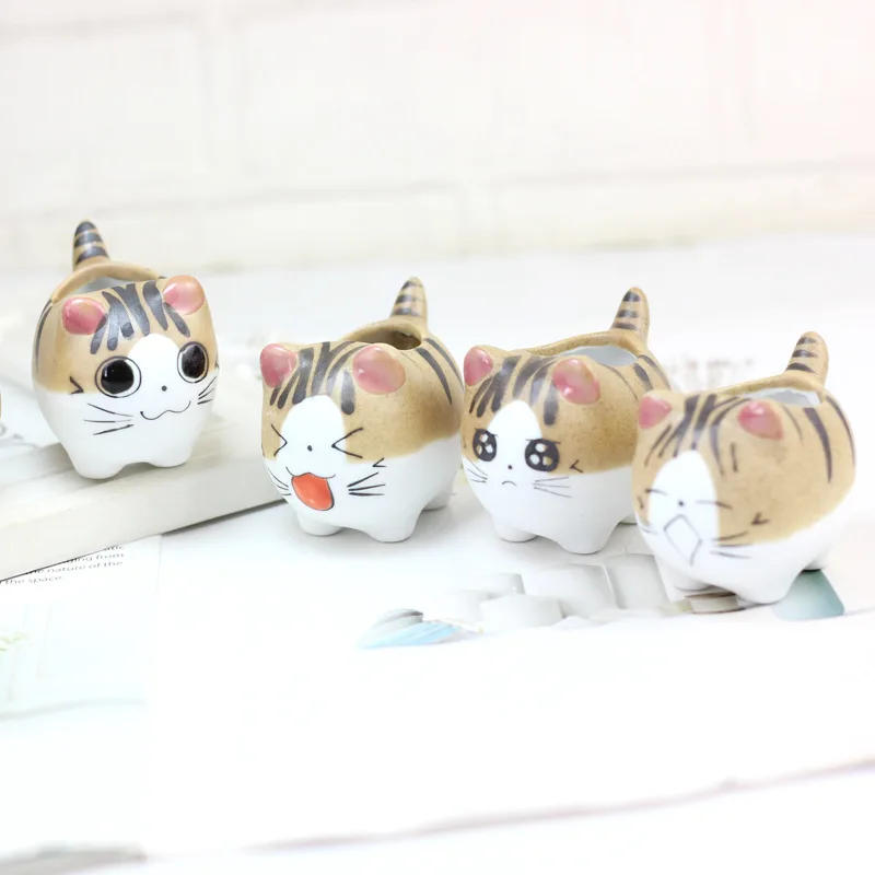 Balcony Decor GiftCute Mini Cat Ceramic Flower Pot Small Cartoon Planter Bonsai Cactus Home Garden Desktop Succulent Plants