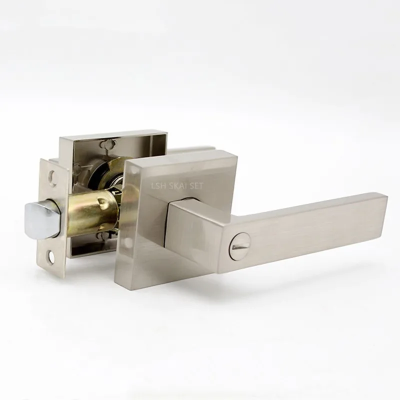 Bathroom Door Handle Three-lever Lock Solid Zinc Alloy Square Door Lock Bedroom Mute Single Tongue Lockset Home Hardware Fitting