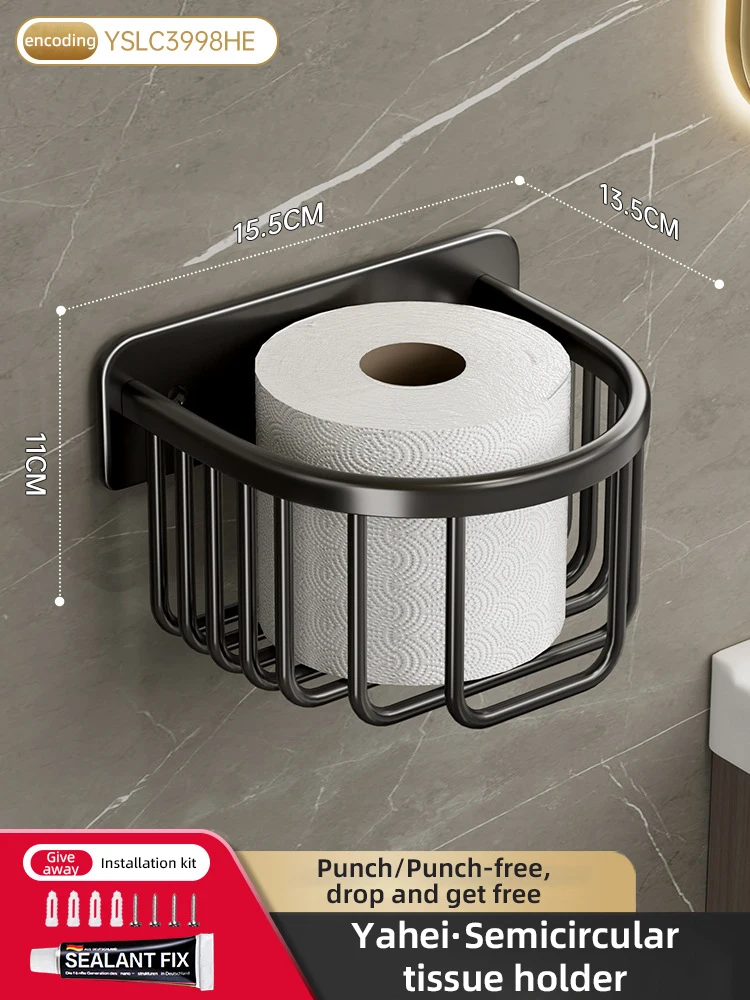 Bathroom Paper Towel Rack Punch-Free Toilet Paper Storage Rack Accessories Aluminum Shower Shelf Bathroom Organizer