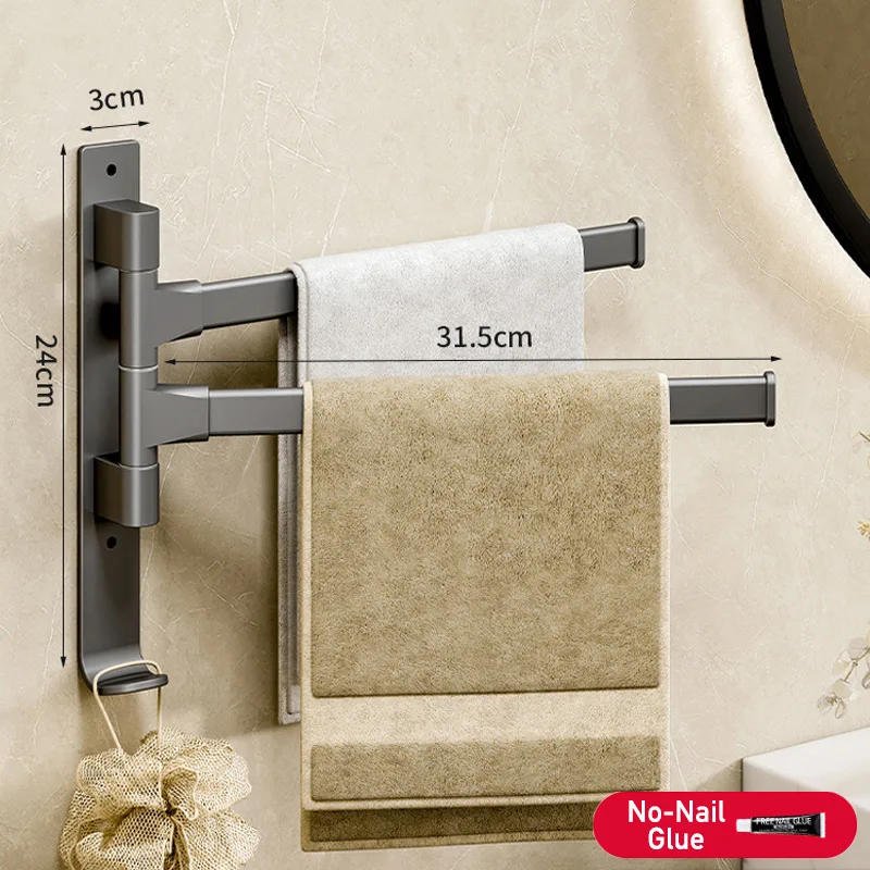 Bathroom Swivel Towel Rack Rotatable 180° Wall Mount without Drilling 2/3/4/5-Bar Towel Hanger Shower Room Kitchen Towel Hanging