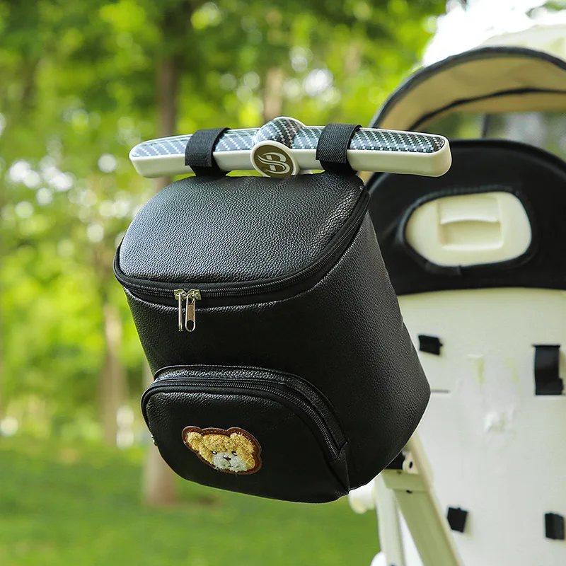 Bear Storage Bag for Baby Stroller PU Leather Milk Powder Bottle Tissue Organizer Bag Travel Pram Carriage Stroller Accessories