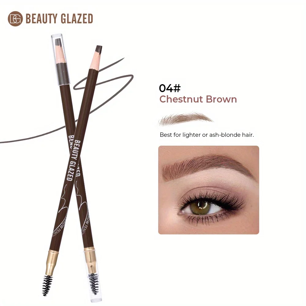 BEAUTY GLAZED 4 Colors Eyebrow Pencil With Brushes Long-lasting Waterproof Brow Pencil Formula Double-head Eyebrow Pencil