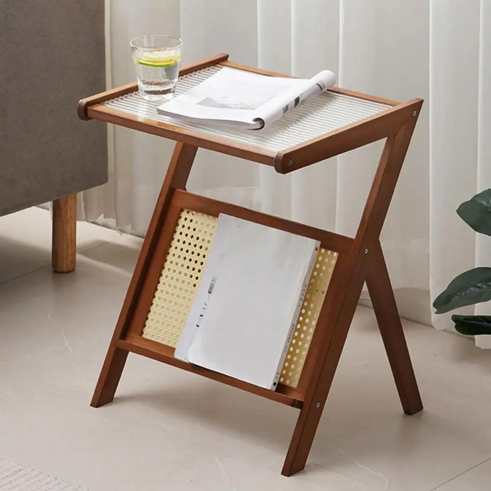 Bedside Table With Rattan Shelf Home Bedroom Living Room Small Space Bamboo Glass Bedside Coffee Table Wooden End Table