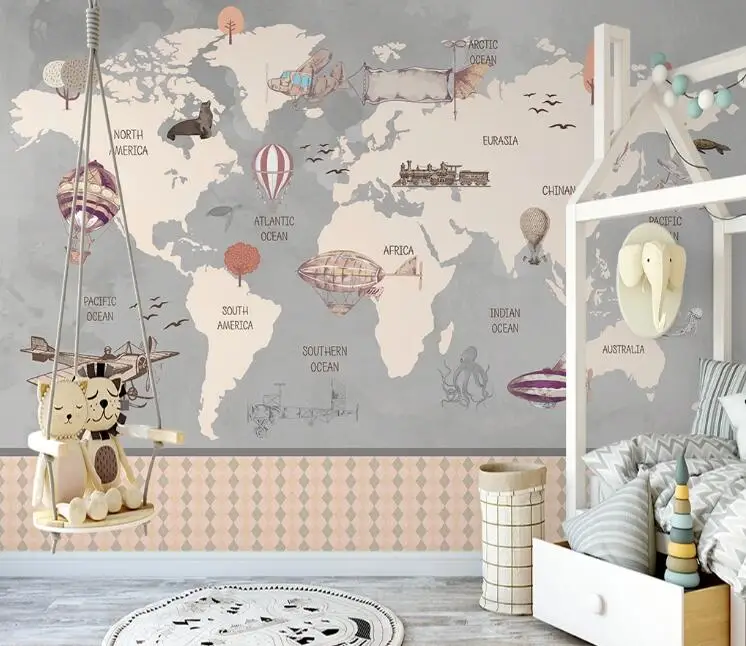beibehang Custom Nordic modern mural wall paper for wall cartoon animal world wallpaper for kids room children's room background