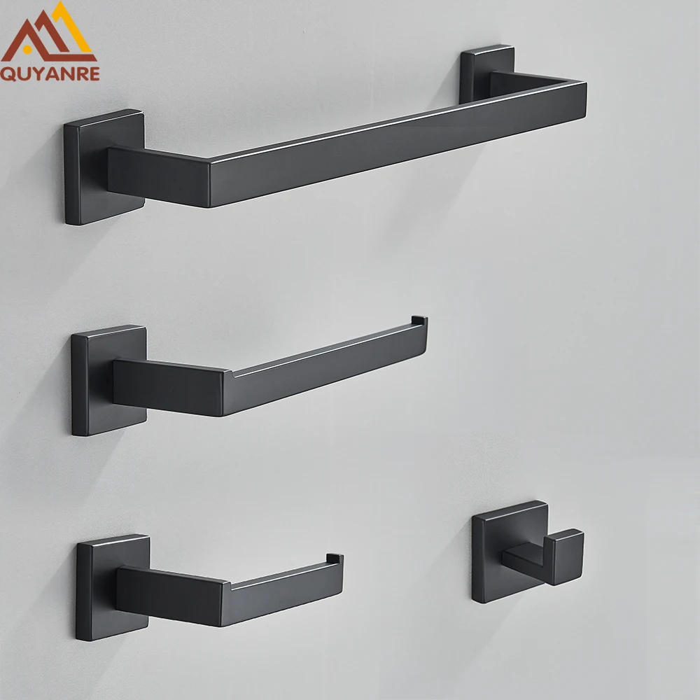 Black Bathroom Hardware Set 304 Stainless Steel Robe Hook Towel Bar Toilet Roll Paper Holder Towel Rack Bathroom Accessories
