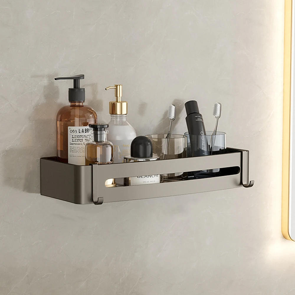 Black Shower Caddy, Metal Shower Shelf Wall Mounted Bathroom Shelves with Hooks, Bathroom Wall Storage Basket, Antirust