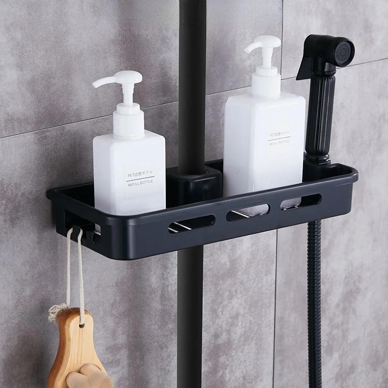 Black Shower Shampoo Tray Shower Shelf Bracket Column Storage Rack Single-layer Bathroom Shelf with Shower Head Bracket
