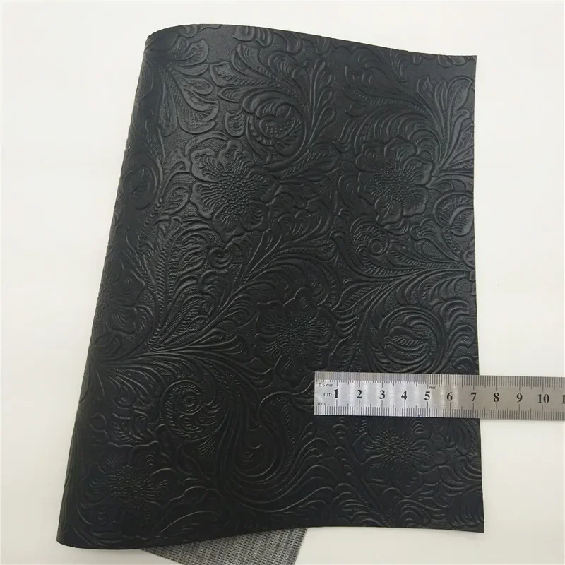 Black Silver Glitter leather Birds Printed Synthetic Leather Flowers Litchi Embossed Vinyl Faux Leather For Bow DIY 21x29CM Q431