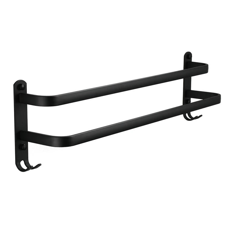 Black Space Aluminum Towel Rack Toilet Hanging Pole Hanging Towel Rack Three Layer Hanging Pole Without Punching