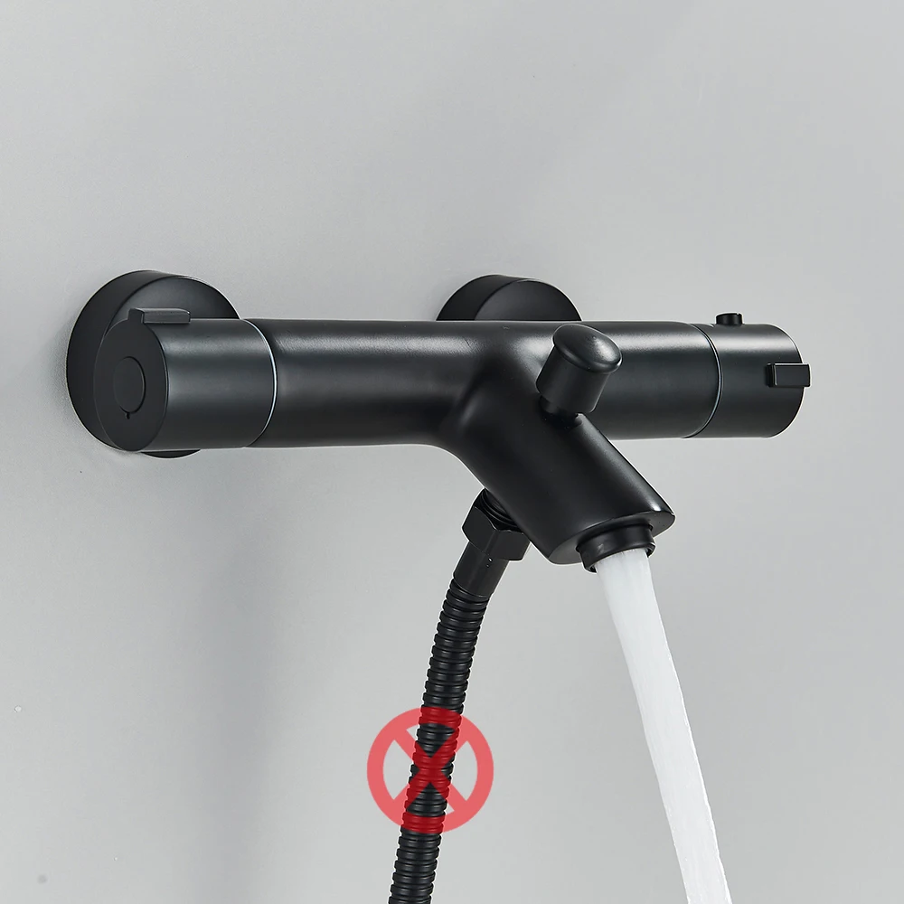 Black Thermostatic Shower Bath Mixer Set Bathroom Thermostatic Mixer Tap Hot And Cold Water Bathroom Mixer Valve Bathtub Faucet