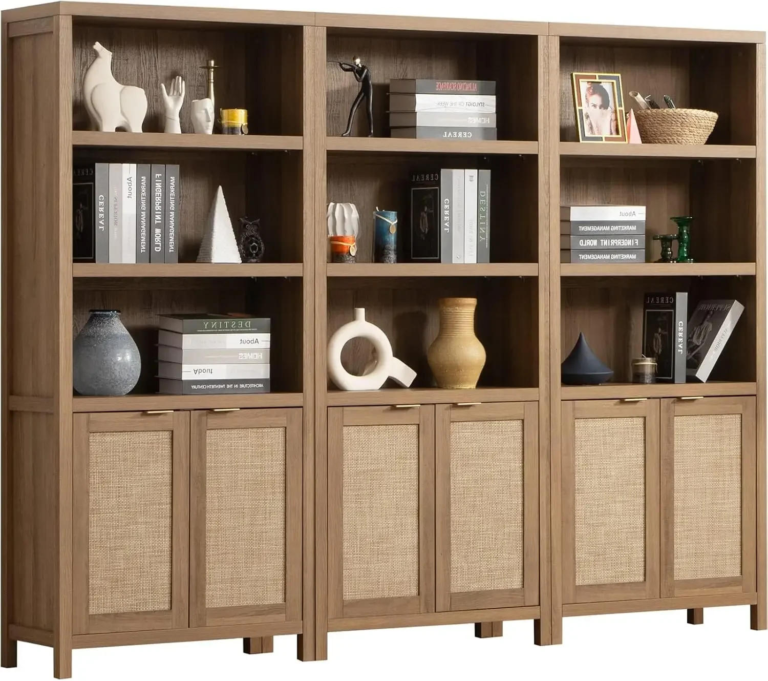 About this merchandise 【Unique Boho Style】- The SICOTAS bookcase is designed with a unique rattan appearance that provides a touch of bohemian attraction to any room in your house The tall ebook case encompasses a captivating farmhouse design, making it a perfect fit for dwelling rooms, bedrooms, domestic offices, and kitchens Not only be a e-book shelf or a plant shelf but in addition a status storage shelf to satisfy your different desires Make your area neat, tidy, and in addition in great style 【Ample Storage Space】- This wide bookshelf is designed with five spacious tiers to provide sufficient space for storing for all your books, photo albums, crafts, decor, and other items All the shelves are adjustable You can easily regulate the shelf to accommodate items of other sizes and shapes, ensuring that your book case stays organized and functional With doors, your items are protected from dust and other prospective hazards, ensuring that they dwell browsing their superb for years to come back 【Sturdy & Durable】- The farmhouse Bookcase is fabricated from effective materials, including thickened board, durable structure, and rattan accents The body is made from FsC-Certified wooden This combination of materials offers energy and durability, making certain that this bookshelf will final for many years to return Each shelf can help up to 44 lbs Whether you should shop heavy books or show fragile items, this bookshelf is built to resist the load and preserve your assets 【Safe & Secure】- This bookcase comes with a secure anti-tip equipment to prevent the shelf from dumping, making certain that your bookshelf will stay secure and secure, even if you've got teens or pets in the house You may have peace of mind knowing that your bookshelf is safe and secure, so you can get pleasure from all of your items with out fear 4 anti-slip foot pads can prevent shaking in choppy areas and protect the ground from scratches Its flat surface without burrs is more secure to use 【Easy to Assemble】- Bookcase overall size is 30"L x 14" W x 70"H Detailed instructions and all mandatory hardware are included, so you could have your new bookcase establish and ready to use in no time We will provide you with respectable customer support before and after your purchase Just contact us with any questions you will have and we will provide you with a satisfactory answer