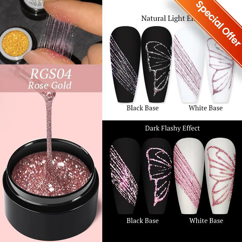 BORN PRETTY Metallic Painting Gel Polish for Nail Art Soak Off Gel Nail Polish Gold Silver Mirror Glitter UV Gel 5ml