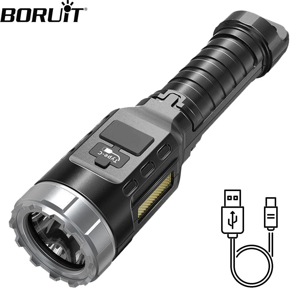 BORUiT Powerful LED Flashlight Type-c Rechargeable Power Bank Tactical Torch Waterproof Camping Emergency Lantern
