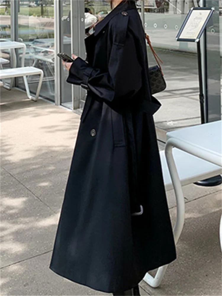 Botvotee Solid Long Trench for Women Fall Winter 2023 New Vintage Turn Down Collar Long Sleeve Jacket Loose Double Breasted Coat