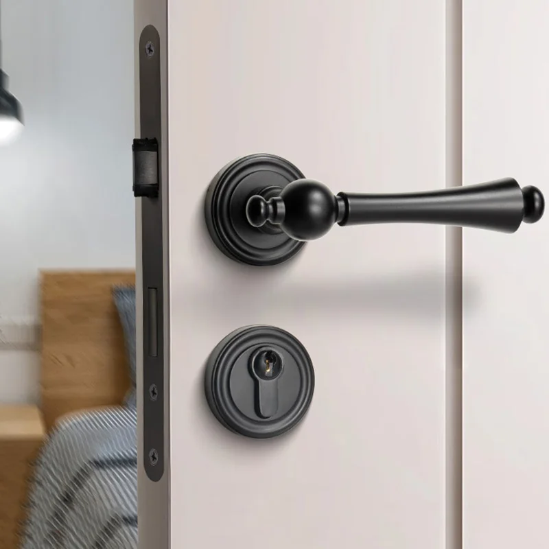 Brass Interior Lever Locks Antique/Black Bedroom Door Handle Lock Mute Mechanical Locks Simple Shaped Door Hardware