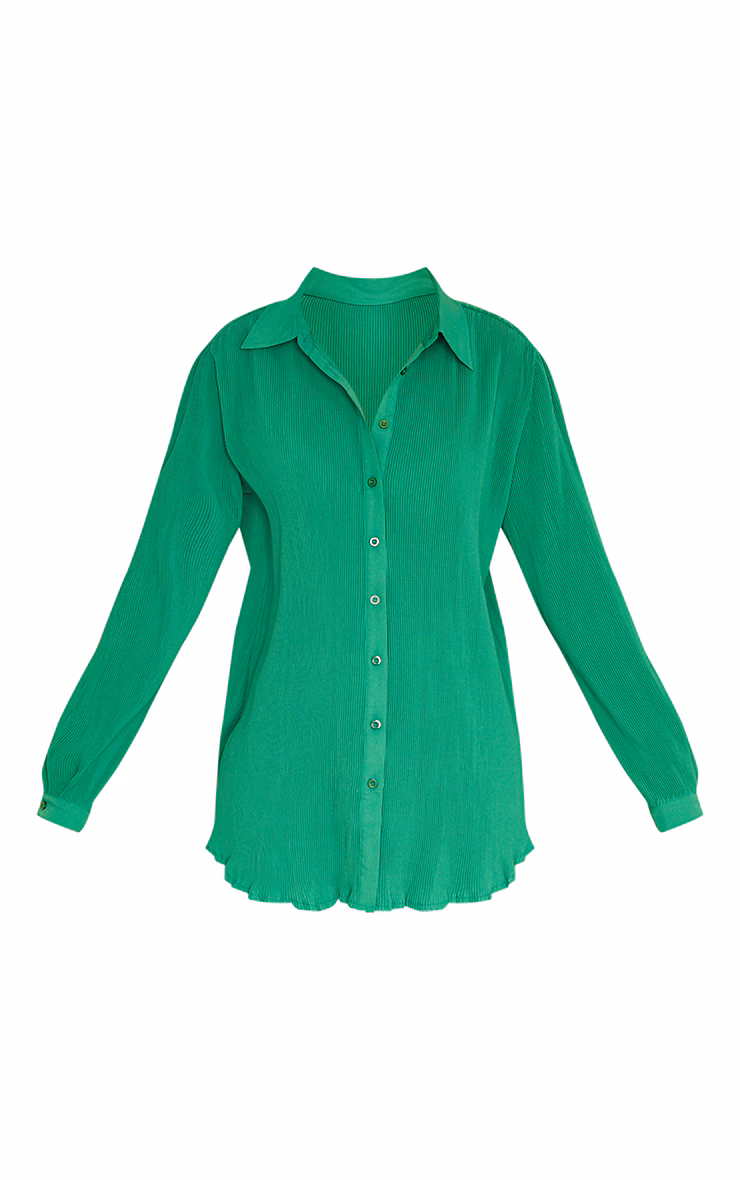 Add some bold vibes to your weekend outfit with this statement green shirt. Featuring a bright green plisse material with a button front design and an oversized fit, what more could you want? A plisse shirt is a must-have right now and this one is perfect for dressing up or down. Simply style this oversized shirt with the matching bottoms, accessories and heeled mules for a blogger-worthy look that is sure to get you noticed.