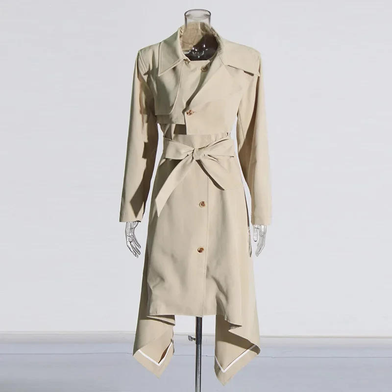 British Style Long Coat 2024 New Fashion Niche Irregular Design Waist Tie Long Windbreaker Women Winter Clothes Women