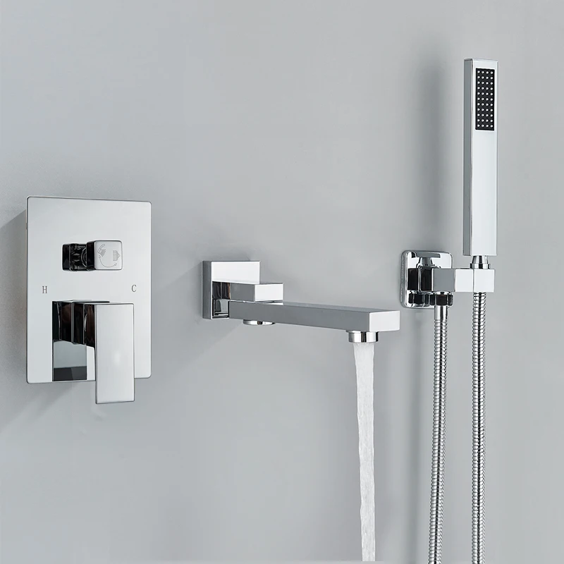 Brushed Gold Bathtub Shower Faucet Rotate Tub Spout Shower 2-way Embedded Box Brass Handheld Shower Hot Cold Water Bath Shower