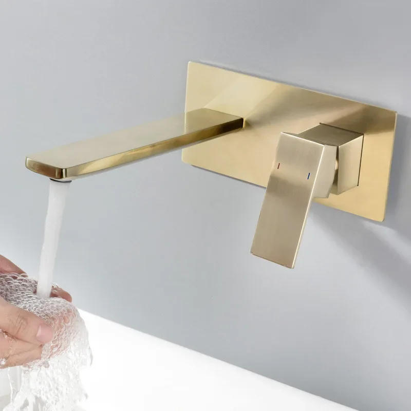 Basin Faucet Concealed Bathroom Sink Faucet Brushed Gold In-Wall Basin Spout Mixer Tap Set Combination Blanoir Solid Brass tap