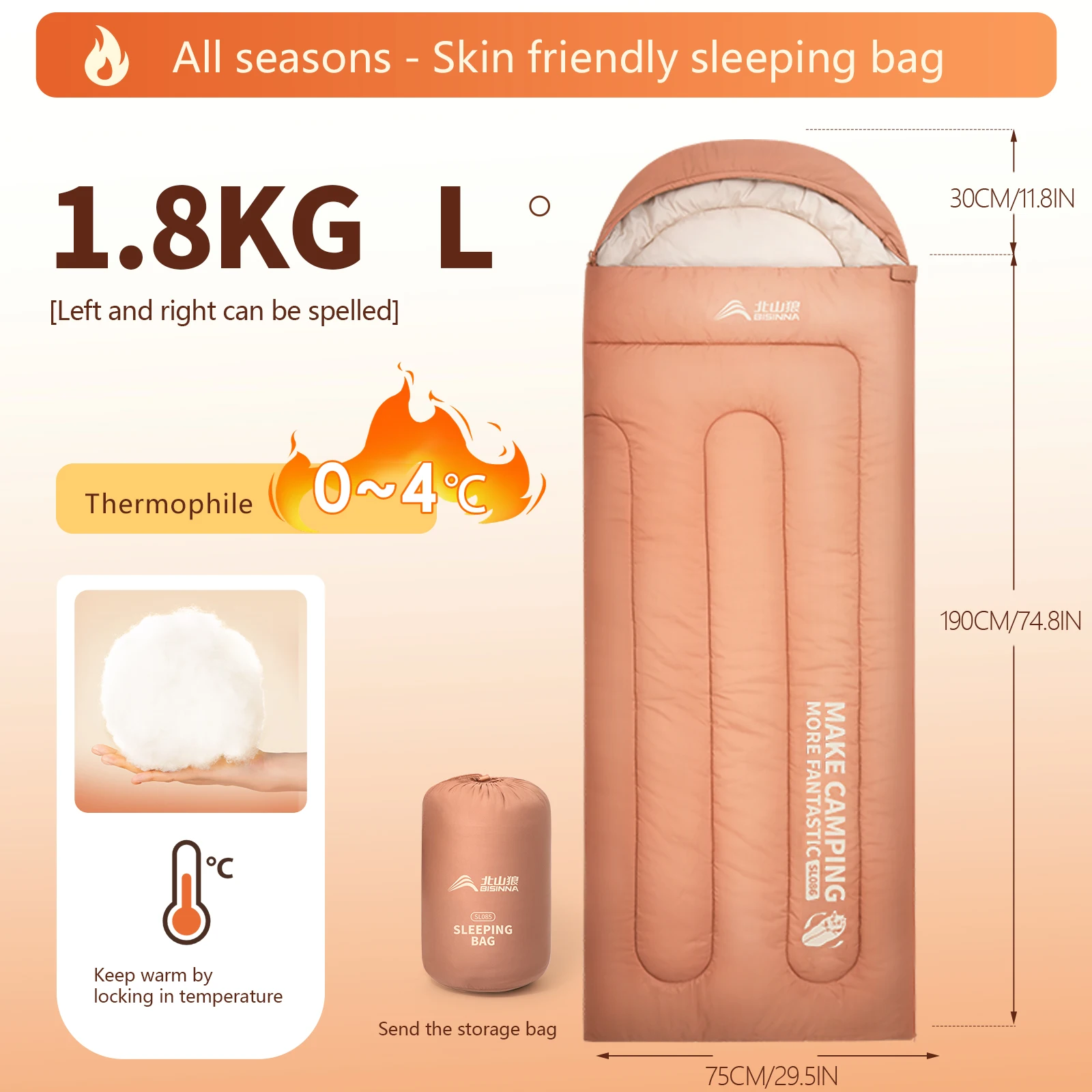 BSWOLF Sleeping Bag Thickened Adult Single Portable Outdoor Camping Winter Cold and Warm Can Be Spliced Double Quilt