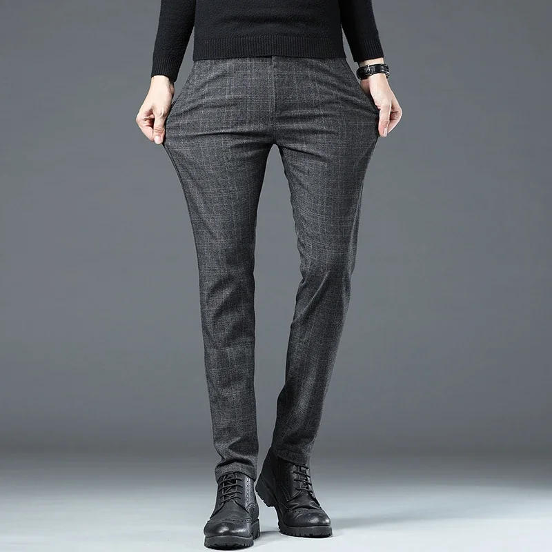 Business Men Pants Spring Autumn Korea Cotton Comfortable Elastic Plaid Casual Fashion Trousers Male Clothing Suit Pant