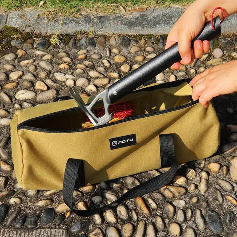 Camping Tool Storage Bag Portable Tent Ground Nail Wind Rope Hammer Pouch Cylinder Large Capacity Handbag Outdoor Accessories