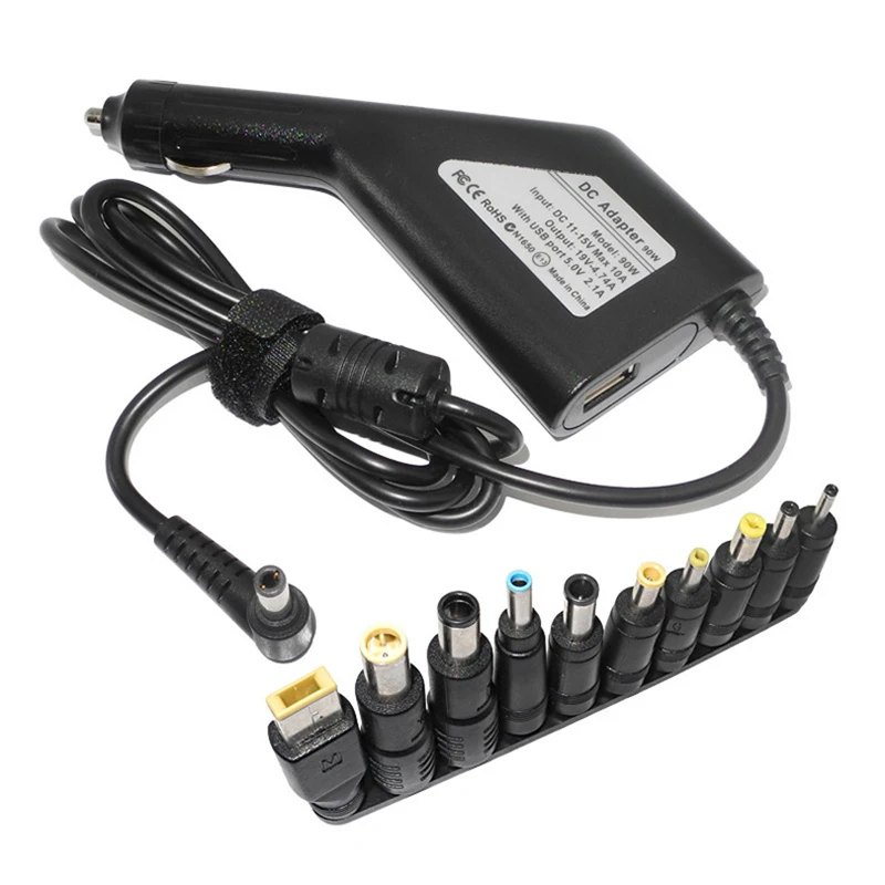 19V 4.74A 20V 4.5A 19.5V 4.62A 90W Laptop Universal Car Charger Dc Power Adapter for Asus Iconic Brand Acer Samsung Notebooks Description 100% Brand new Output:19V 4.74A 90W Input: Support DC 11-15V Car Cigarette Lighter USB Port Output:5V 2.1A 10.5W Connecter size:5.5*2.5MM(see picture ) 10PCS DC Jack Connectors Size (Please double check your original charger DC Size before you buying it, don't make mistake please.): 7.9x5.4mm 7.4x5.0mm USB-C 4.5x3.0mm 6.5x4.4mm 4.0x1.35mm 5.5x1.7mm 5.0x3.0mm 4.0x1.7mm 3.0x1.1mm Package: 1X 19V 4.74A 5.5*2.5MM (DC Connector Size) car charger with 10pcs DC jack 2.Production Assurance: 1.Sound anti-jamming performance,low DC ripple, safe reliable and stable; 2.Broad input voltage range,100-240V, is compliant with global standard; 3.Sound insulation,high-frequency converter of 100% vacuum impregnation; 4.Lead - free soldering, environmental-friendly and safe; 5.Tested by full load, high temperature burn in and 100% aging in order to guarantee low defect rate 0.5%-0.8%; 6.Diversified AC plugs and DC ports, applicable to laptops/notebooks with a variety of ports in the market; 3.Production Feature: 1,Portable and convenient:you can cramm the car charger into your pocket 2,new style:unique appearance,Elegant materials 3,high-quality:with full power;multi-protection;over-current;over-temperature;over-voltage;short-circuit prevention; disturbing- prevention;also with SMT tag mounting on the PCB and also assemble insulating and shielding.
