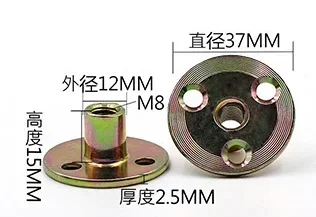 Carbon Steel Flange Coupling with M8 M10 Thread Zinc Plating Three Hole Lock Nuts Furniture Connector Fastener