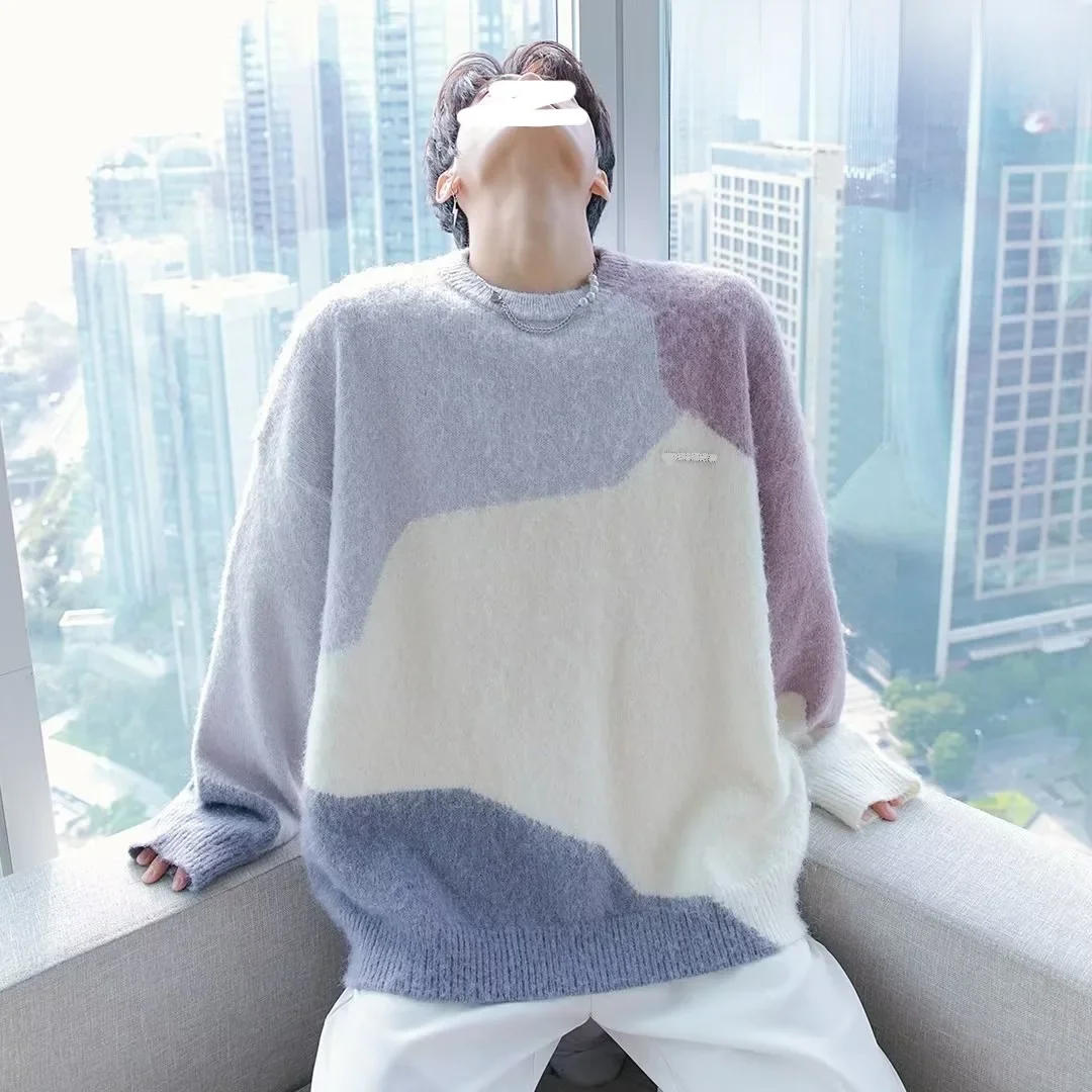 Casual Knitted Top Long Sleeve Hong Kong Style Round Neck Pullover Trendy Fashionable Urban Lightwind Men's Winter Sweater