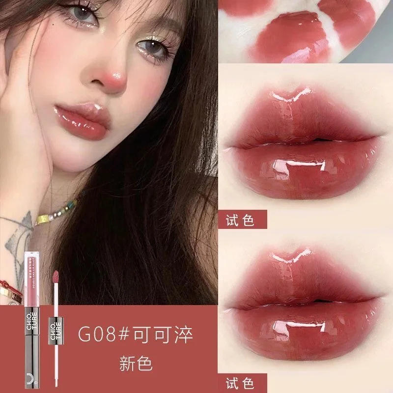 CHIOTURE Double-ended Lip Glaze Mirror Watery Glossy Lip Oil Lip Honey Female Non-stick Cup Lipstick Lip Gloss Non-fading Makeup