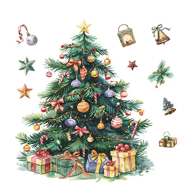 Christmas Tree gift Bell Toilet Lid Decal Waterproof WC Door Sticker Removable Self-Adhesive Decor Household Stickers S196