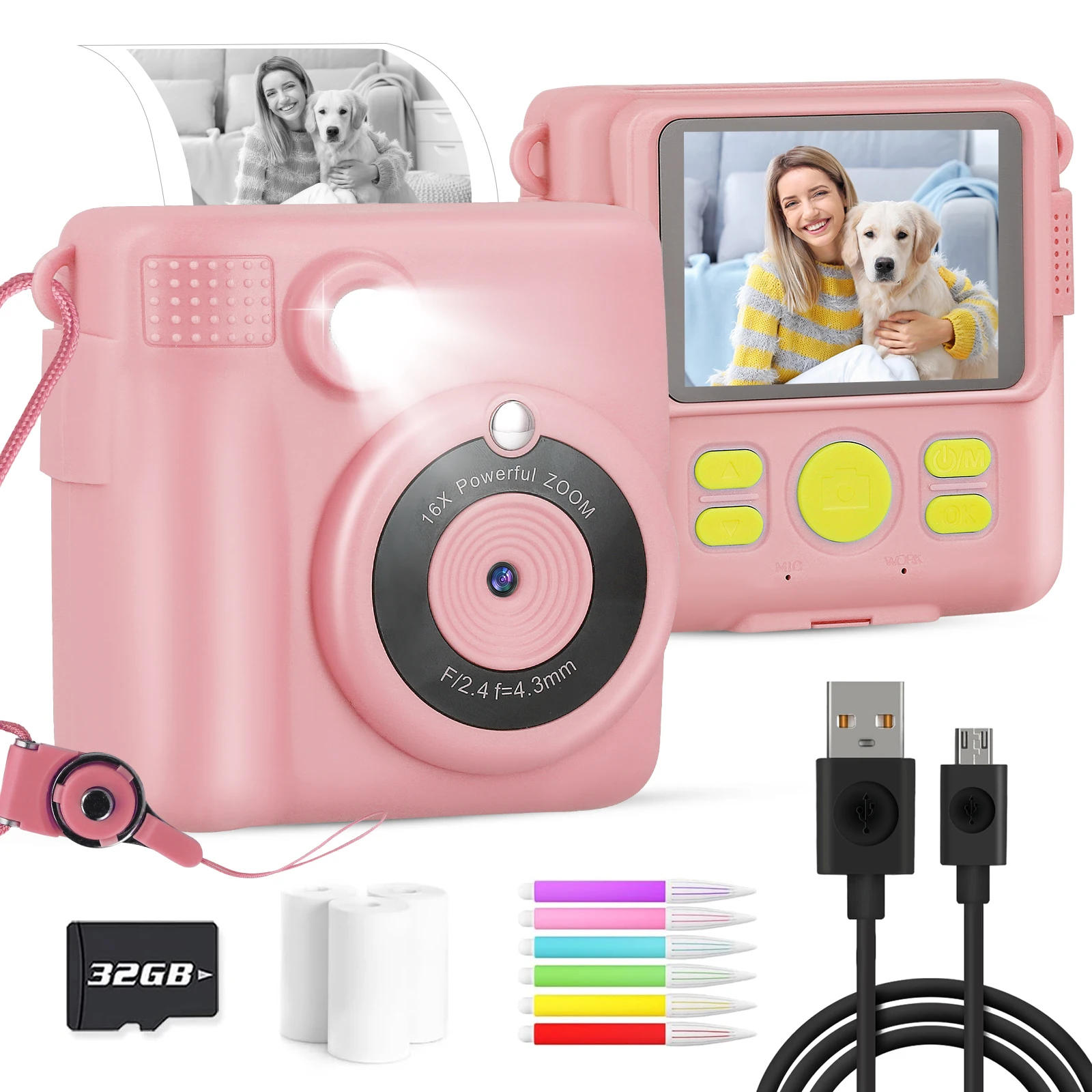 Kids Camera for Girls Boys, Kids Instant Print Camera Toy for 3-14 Year Old, 1080P HD Kids Digital Camera with Photo Paper Birthday Gifts for three four five 6 7 8 9+ Year Old Girl 6 Colour Pens 32GB SD Card Product Description: Material:ABS Product size:19 Quantity: 1 Pc 【Instant Camera for Kids】: youth Camera can print out a photo in seconds with upgraded thermal printing know-how No ink or toner is required Simply select the photograph mode and press the "OK" button, A black&white photo will pop out directly three rolls of BPA loose thermal paper are supplied for printing about 372 photos, youngsters can print as many images as they wish 【Multifunctional Camera for Video Recording】: This camera for youngsters is not only an instant digital camera but also a digital camera 1080P HD video recording and 8MP lens enable teens to take clean movies and images 2 inch IPS display better displays the color 16X zoom can magnify or decrease the subject Plus different purposes similar to Burst shooting, Playback, Music, Games and ect, Kids digital camera can meet all your deserve to timely seize each special moment throughout youngsters growing up 【Powerful Battery & 32GB SD Card】: This instantaneous print camera for youngsters has built-in rechargeable 1000mAh battery, which assist 2 hours of continuing video after completely charged Type-C USB charging cable is incorporated You can transfer pictures and movies on your laptop/pc/phone Colour images and movies are automatically saved on camera With 32GB SD card, you would take 1000's of images and many movies 【Creating Unique Artwork on Pictures】: This youngsters immediate digital camera has 15 types of scene filters, 16 forms of frames and five various printing density(0-4) Children can add frames&filters when printing or taking pictures With included 6 colourful pens Kids can doodle on pictures to create their own exotic art exhibiting creativity and mind's eye 【Ideal Toy Gift for Girls Boys】: With this teenagers immediate print camera, kids can take photos/selfies/videos without having to apply cellular phone, which keeps them faraway from screens Simple person interface allows kids to function camera easily OPERHOO youngsters camera is designed lightweight and portable Convenient for youngsters to hold on party, travel or gambling exterior Ideal birthday gift, Christmas gift for youngsters 3 4 5 6 7 8 9 10 11 12 thirteen 14 years outdated Package Included: 1 ×Kids Camera for Girls Boys