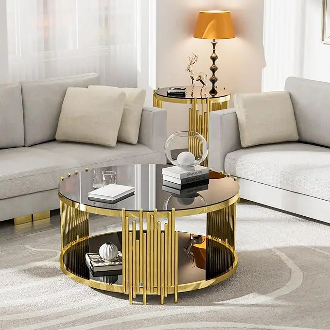 Product Description Bring a stunning contact of recent to your home with this black round coffee desk Elegant gold coloration and exotic design are the emblem of understated luxurious feature, which shows owner's savor Color and Dimensions With vivid Irregular cylindrical chrome steel pipe welding, this living room desk is designed to stand out in your house Black tempered glass peak is quite tender and waterproof, simpler to scrub High Quality stainless-steel frame instead of usual steel frames, durable and sturdy Adjustable plastic foot pads preserve your surface What must I do if the glass is damaged? We may be chargeable for broken glass on the method and reissue Product specs The coffee desk size: 35"Dia x 17"H , Weighs 99lbs End table size: 9"L Dia x 21"H , Weighs 33 lbs Material:Tempered glass + Stainless metal Weight Capacity: three hundred lbs , /* Ensuring the carousel takes solely the space it wishes The sizes should be set back at the certainly placed points to allow them to absorb area */ , /* This centers the carousel vertically on peak of the hero image container and after the emblem area (125px) Margin-top = (heroHeight - cardHeight - logoAreaHeight) / 2 + logoAreaHeight */ /* Cards need to have a width set, otherwise they default to 50px or so All playing cards should have an identical width The carousel will resize itself so all cards take the width of the largest card The left margin is for leaving an area between every single card */ /* styling the navigation buttons in order that they are taller, flush with the sides, and have a clear white background */ , , ,