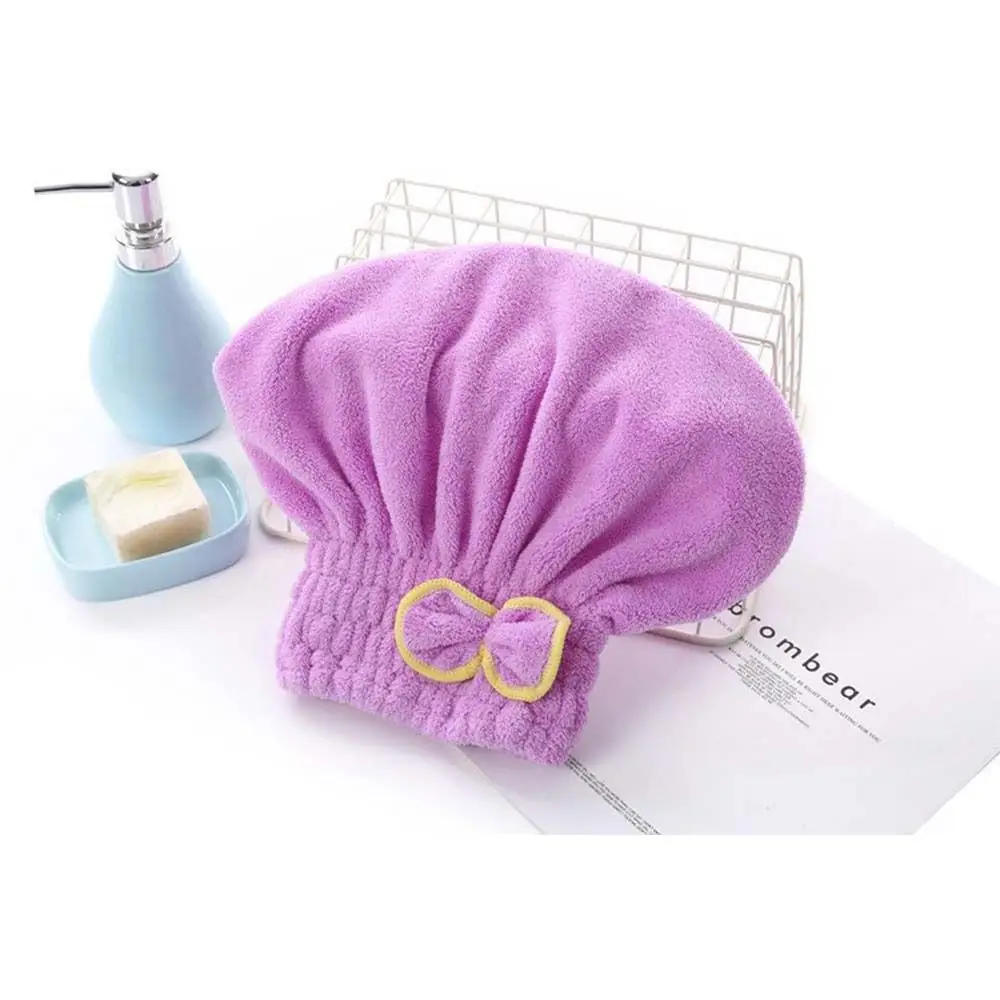 Coral Velvet Dry Hair Hat Solid Color Bowknot Thick Dry Hair Towel Quick Drying Towel Headgear Shower Headband Shower Cap