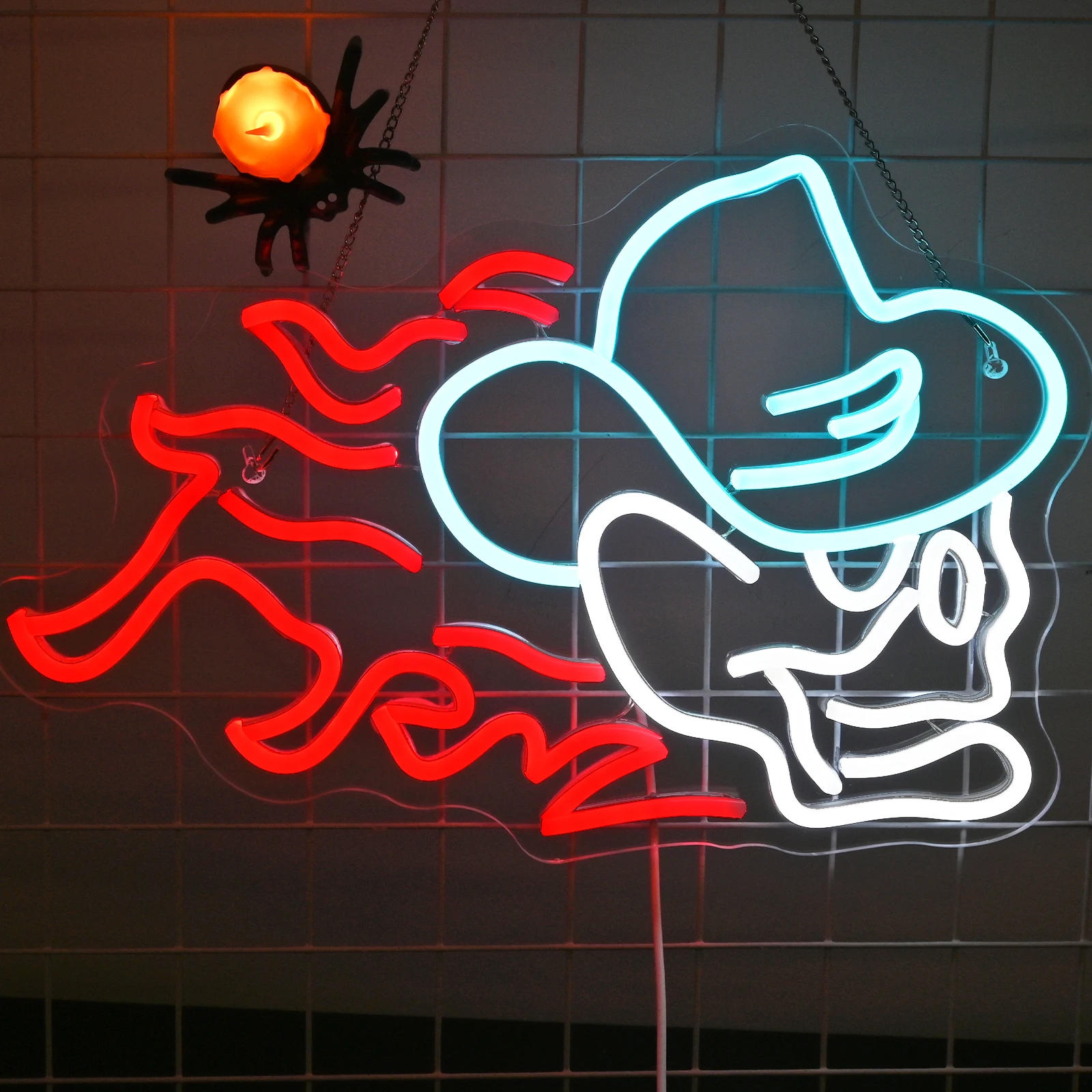 Cowboy Fire Skull Neon Led Sign Halloween Decoration Dimmable LED Lights Children's Bedroom Party Bar Club Lamp Wall Decor Signs