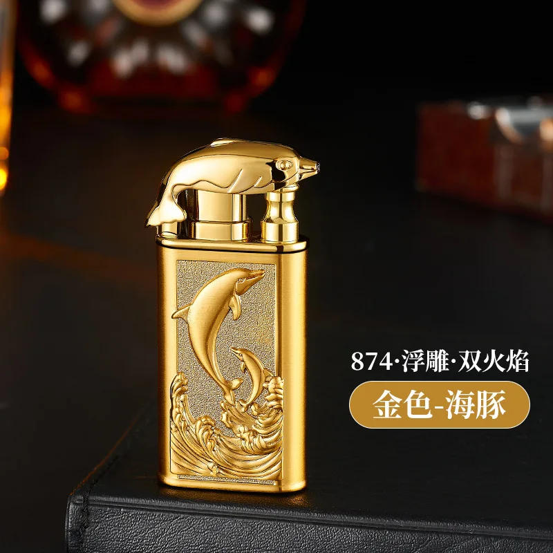 Creative Embossed Shenlong Double Fire Gas Lighter Metal, Flame Spray Tool, Cigarette Lighter, Trendy and Fashionable Men,