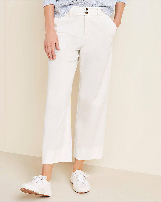 A fall fixture. You'll wear these lighter-weight cotton cords with a sweater and wedges to work, or a tee and sneakers to weekend. Featuring a cropped, wide leg for a striking silhouette, and special pocketing for secret tummy support. Classic fit; relaxed leg Classic rise Belt loops Zip fly; button closure Front slash pockets Back welt pockets 26" inseam Cropped; wide leg 100% cotton Imported