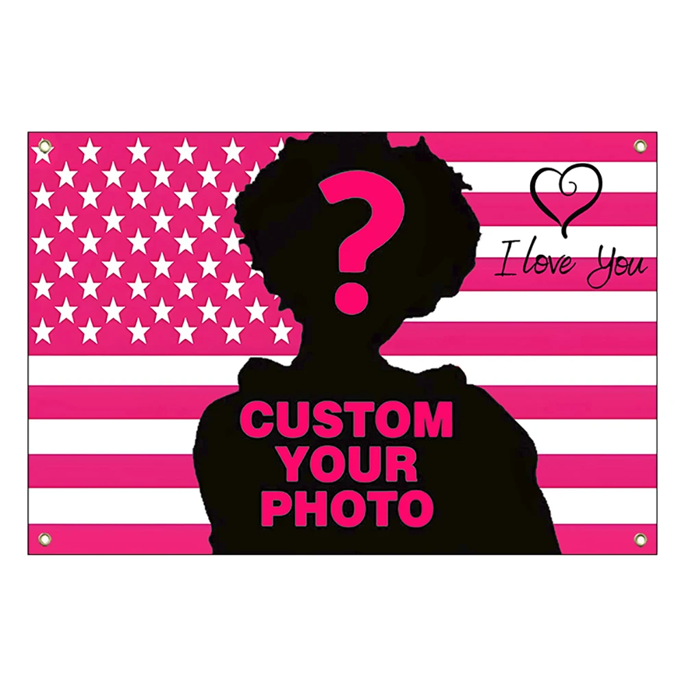 Custom Pink USA America Flag 2x3Ft Personalized I Love You Banner Design Image Funny Tapestry Poster Dorm Room Living Bedroom