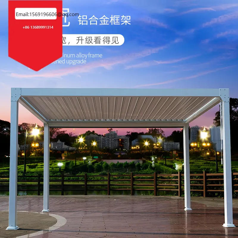 Custom White Grey Villa Hotel Electric Flap Shutter Pavilion Aluminum Alloy Pergola Intelligent Sunshade Leisure Outdoor