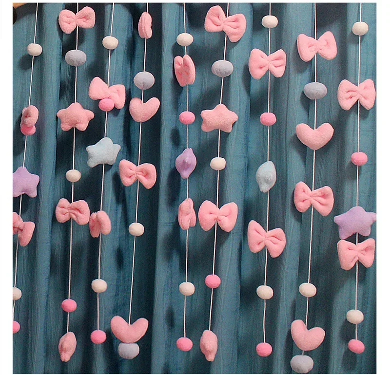 Cute Sweet Bow Shaped Curtain for Living Room Decor Tassel Curtain Divider String Girl Room Partiton Door Window Valance