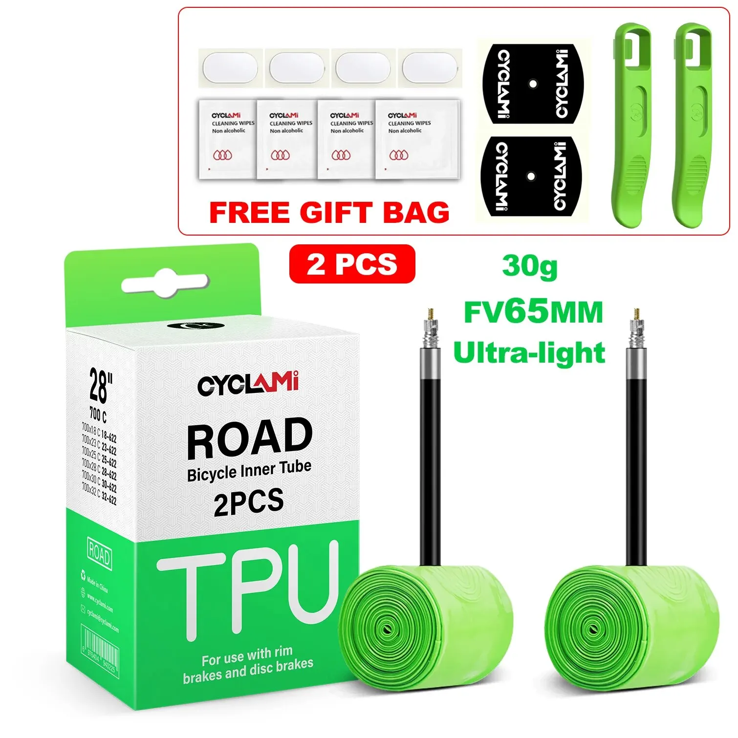 CYCLAMI Ultralight 30g Bicycle Inner Tube Road Bike Bicycle TPU Inner Tire 45mm 65mm 85mm French Valve Super Light Tube
