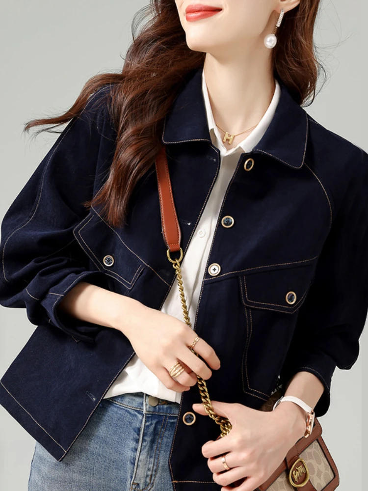 Denim Jackets Women 2023 Autumn Spliced Turn Down Collar Korean Women's Clothes Street Fashion Versatile Long Sleeve Tops Coat