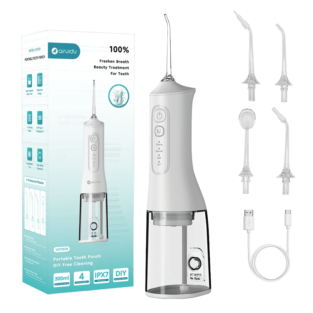 Dental Oral Irrigator Water Flosser Thread Teeth Pick Mouth Washing Machine 1500mah 4 Modes Type-C Rechargeable 300ml Tank