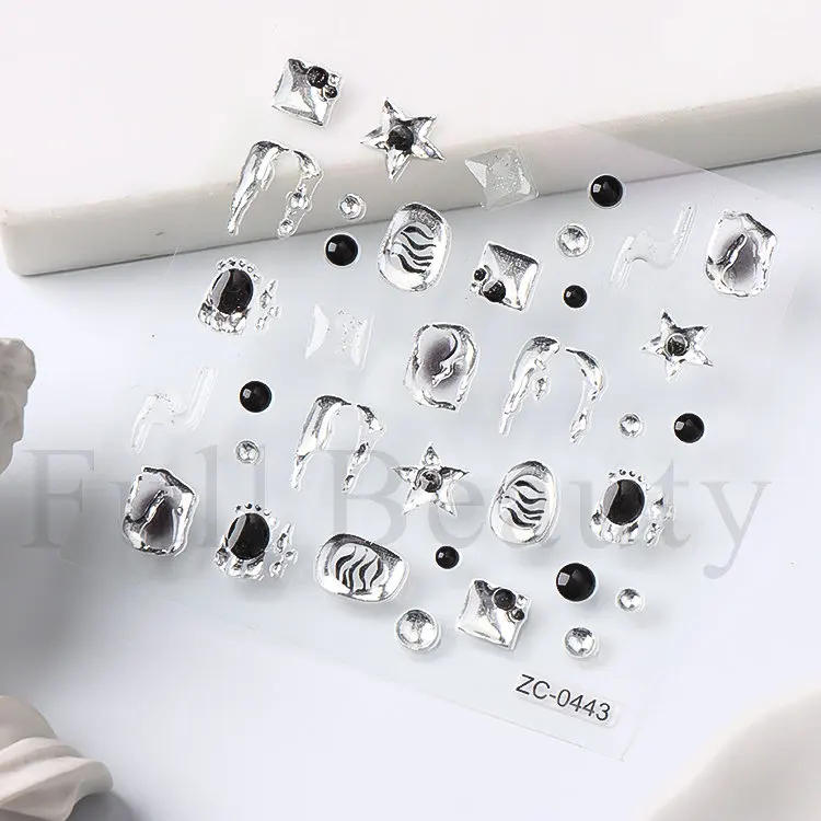 Diamond Pearl Self Adhesive Stickers For Nail Gold Frame Abstract Geometric New 5D Creative Decals Nail Art Decoration LAZC-0447
